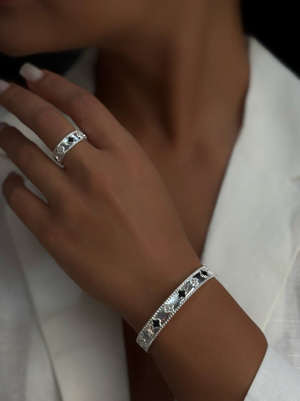 این ست شیک و هماهنگ، ترکیبی زیبا از سادگی و جذابیت است. انگشتر و دستبند با طراحی یکسان و هماهنگ، استایل شما را یکدستتر و حرفهایتر نشان میدهند. انتخابی ایدهآل برای کسانی که به جزئیات و هماهنگی در اکسسوریها اهمیت میدهند.